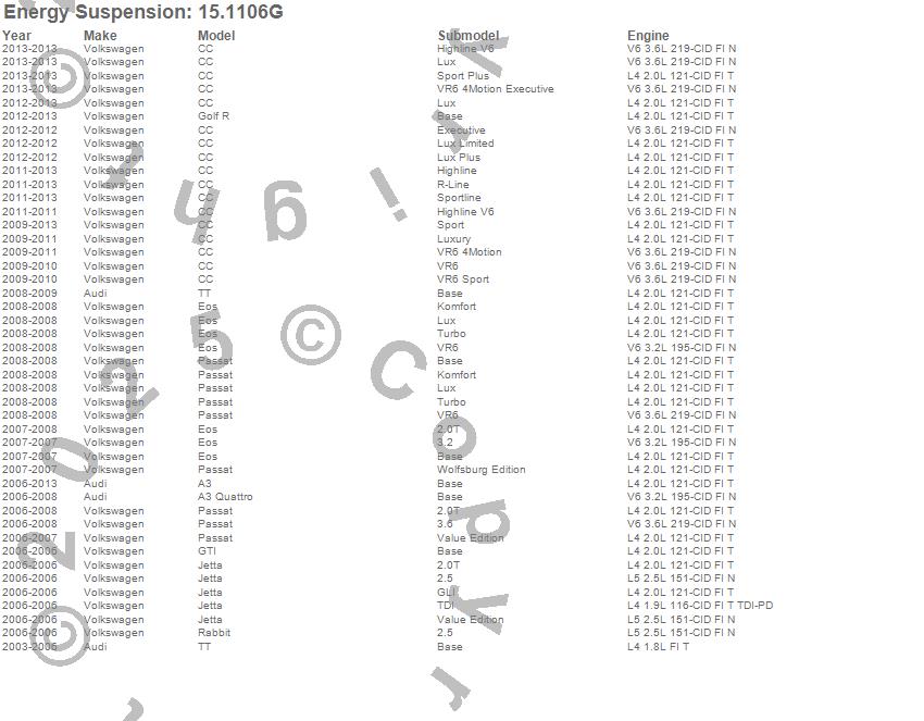 Below is an abreviated list of applications for the Polyurethane Motor Mount Insert.
