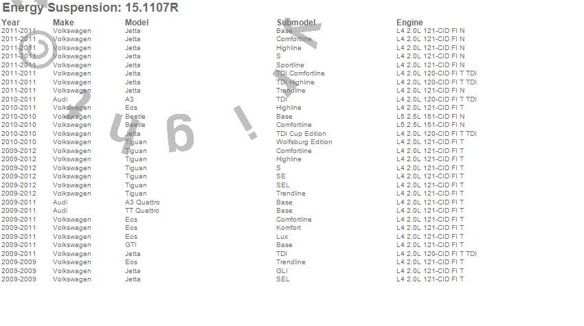 Below is an abreviated list of applications for the Polyurethane Motor Mount Insert.