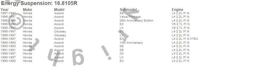 Below is an abreviated list of applications for the End Link Bushing Set.