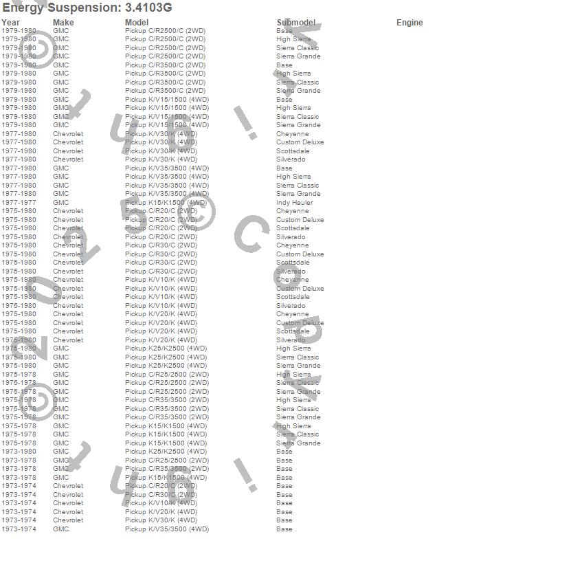Below is an abreviated list of applications for the Body Cab Mount Set.