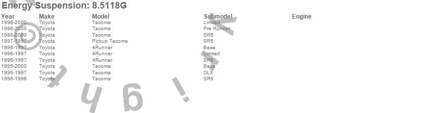 Energy Suspension is a self-contained company with all services in-house–in order to maintain the highest quality control possible. They have over two decades of in-house experience in innovating, engineering and formulating a wide selection of polyurethane components for many different industries. This has qualified Energy Suspension as a premier manufacturer of the highest quality polyurethane products available today. Excellence is company policy, from the initial design stages, where tolerances, preloads and material formulations are made–through the molding processes, to welding techniques, to hardware selection. This attention to component function and the devotion to quality has resulted in nine U.S. Patents for the company. Innovations include: FIRST with a state-of-the-art on-site new product development program which carefully analyzes various vehicle reactions equipped with Energy's Performance Polyurethane technology. FIRST with the largest product line in the industry for both import and domestic vehicles, and it still is! FIRST with replacement Performance Polyurethane automotive Control Arm Bushings containing outer metal shells. FIRST with a patented Performance Polyurethane Transmission Mounts utilizing an Interlocking Safety Feature. FIRST to offer complete Performance Polyurethane suspension bushing Master Sets for front-to-rear coverage of vehicle suspensions for popular import & domestic vehicles-called THE HYPER-FLEX SYSTEM. FIRST with Polyurethane Greaseable Anti-Sway Bar Bushings which feature easy greaseable zerk fittings. FIRST with Performance Polyurethane Ball Joint and Tie Rod Dust Boots. FIRST with a complete Performance Polyurethane Vehicle Product Catalog Web Site that is updated weekly!