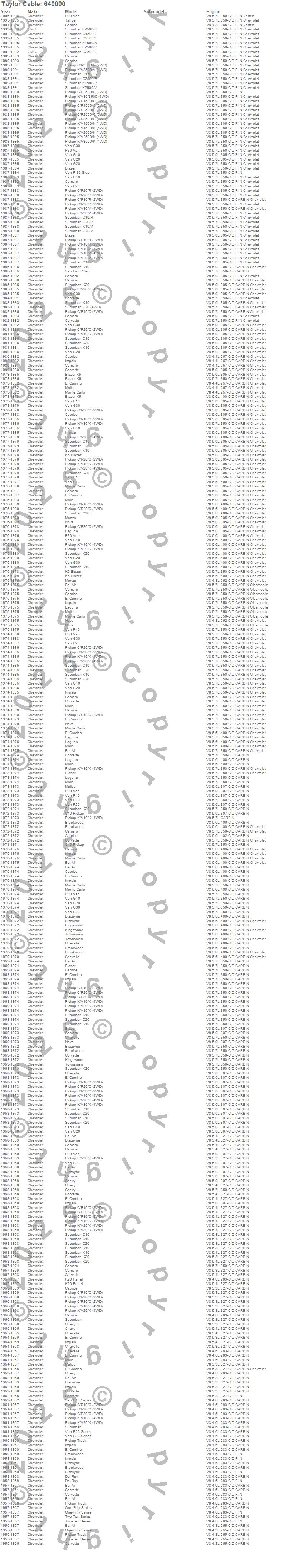 Bel Air, Biscayne, Blazer, Blazer K5, Brookwood, C10 Pickup, C10 Suburban, C1500 Pickup, C1500 Suburban, C20 Pickup, C20 Suburban, C2500 Pickup, C2500 Suburban, C30 Pickup, C3500 Pickup, Camaro, Caprice, Chevelle, Chevy II, Corvette more…