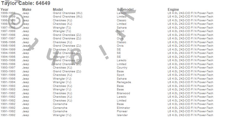 Below is an abreviated list of applications for the High Energy Ignition Wire Set.