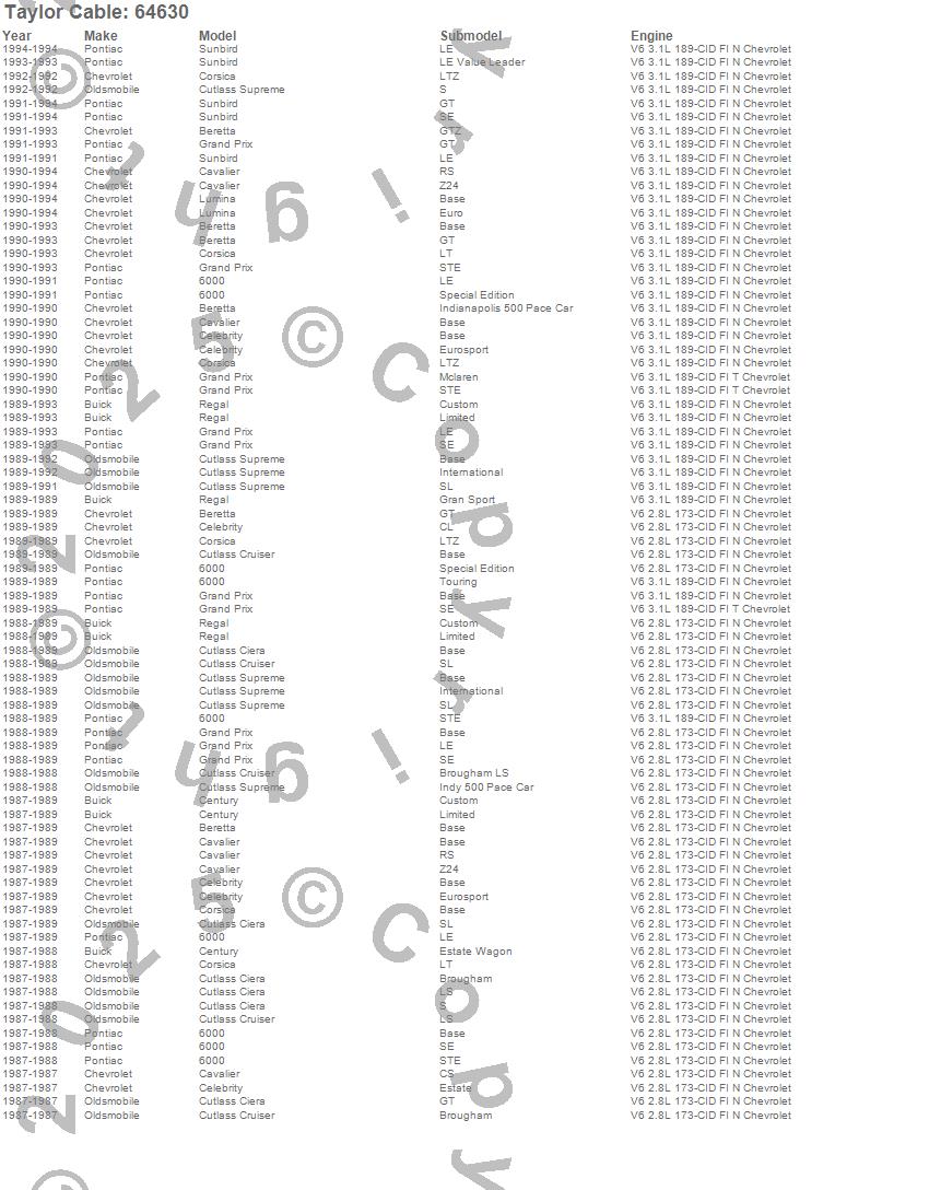 Below is an abreviated list of applications for the High Energy Ignition Wire Set.