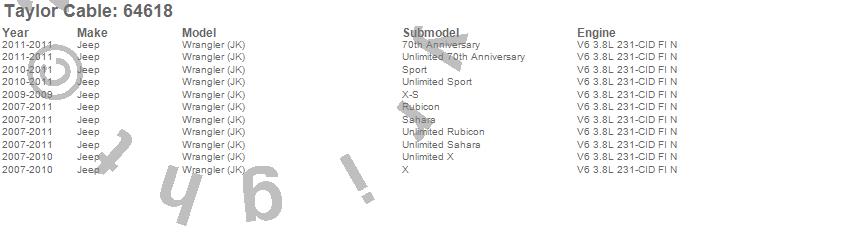Below is an abreviated list of applications for the High Energy Ignition Wire Set.