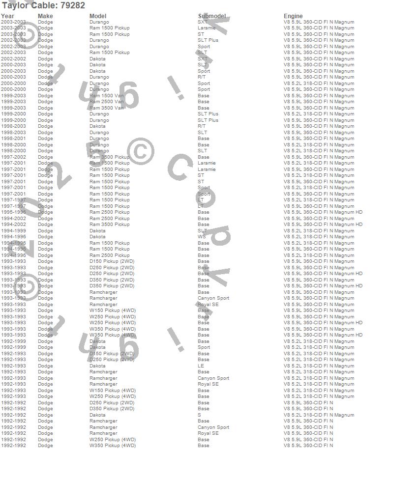 D150 Pickup, D250 Pickup, D350 Pickup, Dakota, Durango, Ram 1500, Ram 1500 Van, Ram 2500, Ram 2500 Van, Ram 3500, Ram 3500 Van, Ramcharger, W150 Pickup, W250 Pickup, W350 Pickup, Dodge, 2003, 2002, 2001, 2000 more…