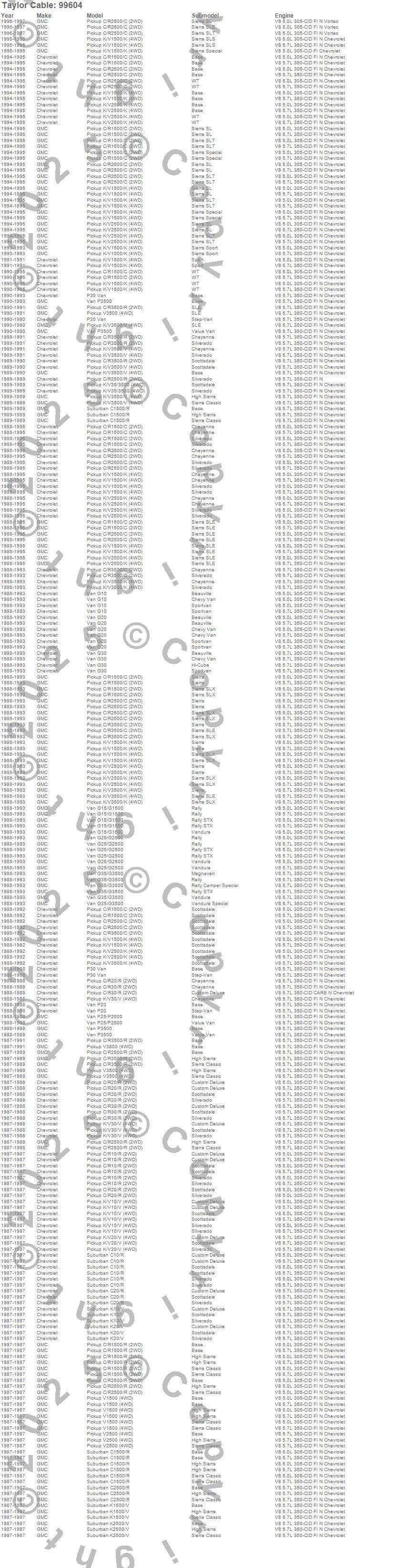 C1500, C1500 Pickup, C2500 Pickup, C3500 Pickup, G10 Van, G15/G1500 Van, G20 Van, G25/G2500 Van, G30 Van, G35/G3500 Van, K1500, K1500 Pickup, K2500 Pickup, K3500 Pickup, P20 Van, P25/P2500 Van, P30 Van, P3500 Van, R10 Pickup, R10 Suburban more…