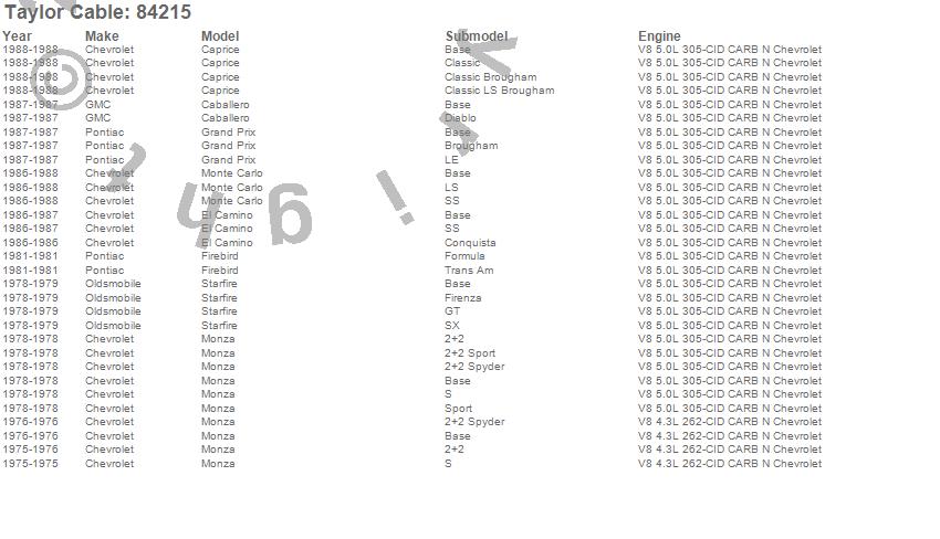 Below is an abreviated list of applications for the ThunderVolt 40 ohm Ferrite Core Performance Ignition Wire Set.
