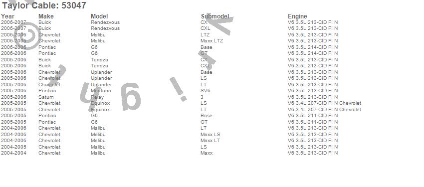 Below is an abreviated list of applications for the Street Thunder Ignition Wire Set.