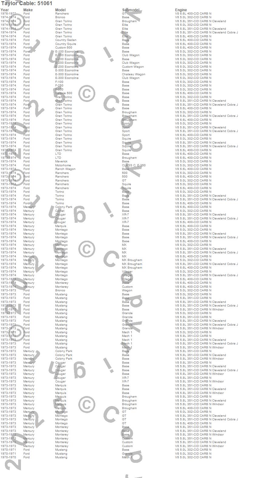 Bronco, Colony Park, Comet, Cougar, Country Sedan, Country Squire, Custom 500, E-100 Econoline, E-200 Econoline, E-300 Econoline, F-100, F-250, F-350, Galaxie 500, Gran Torino, LTD, Marquis, Maverick, Montego, Monterey more…