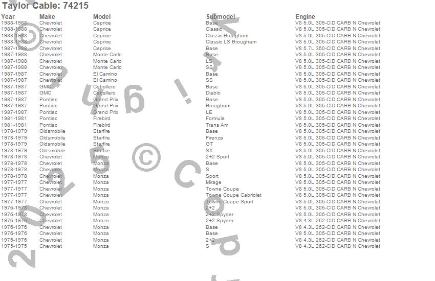 Caballero, Caprice, El Camino, Firebird, Grand Prix, Monte Carlo, Monza, Starfire, Chevrolet, GMC, Oldsmobile, Pontiac, 1988, 1987, 1981, 1979, 1978, 1977, 1976, 1975 more…