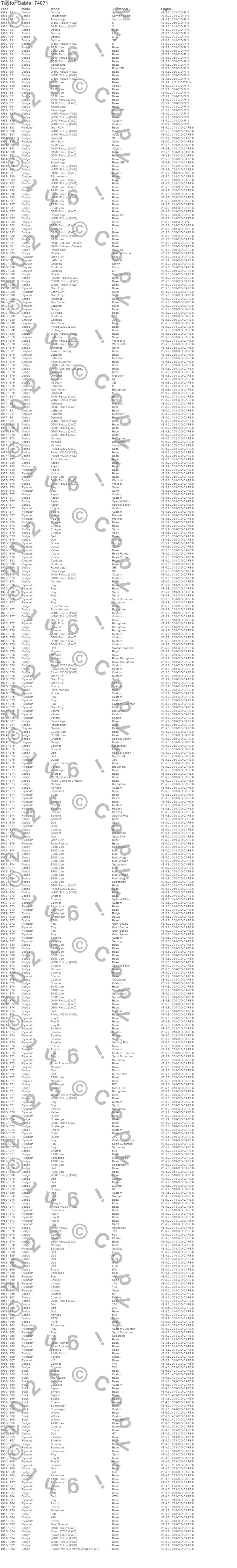 330, 440, 880, A100 Truck, A100 Van, Aspen, B100 Van, B150 Van, B200 Van, B250 Van, B300 Van, B350 Van, Barracuda, Belvedere, Belvedere II, CB300 Van, Challenger, Charger, Cordoba, Coronet more…