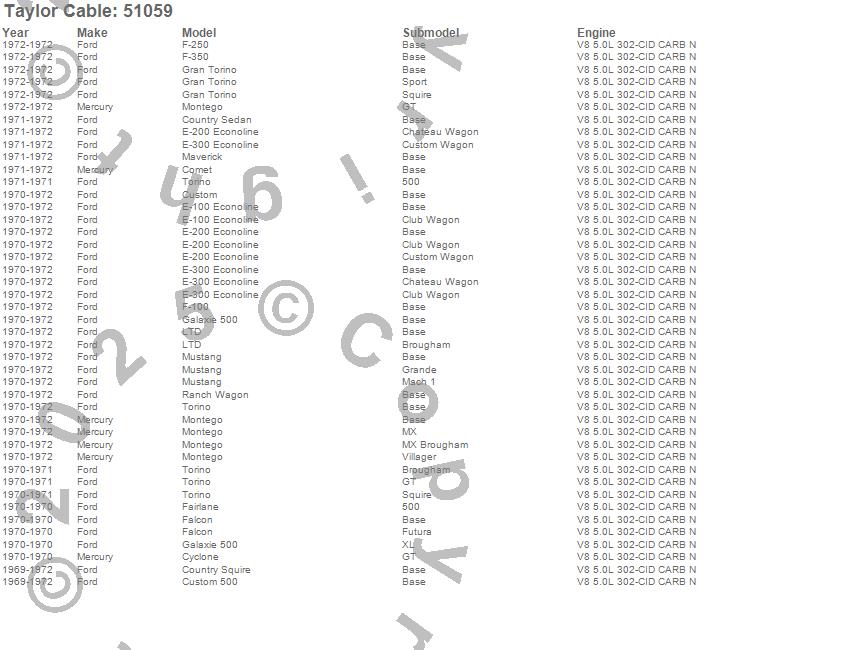 Comet, Country Sedan, Country Squire, Custom, Custom 500, Cyclone, E-100 Econoline, E-200 Econoline, E-300 Econoline, F-100, F-250, F-350, Fairlane, Falcon, Galaxie 500, Gran Torino, LTD, Maverick, Montego, Mustang more…