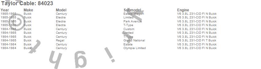 Below is an abreviated list of applications for the ThunderVolt 40 ohm Ferrite Core Performance Ignition Wire Set.