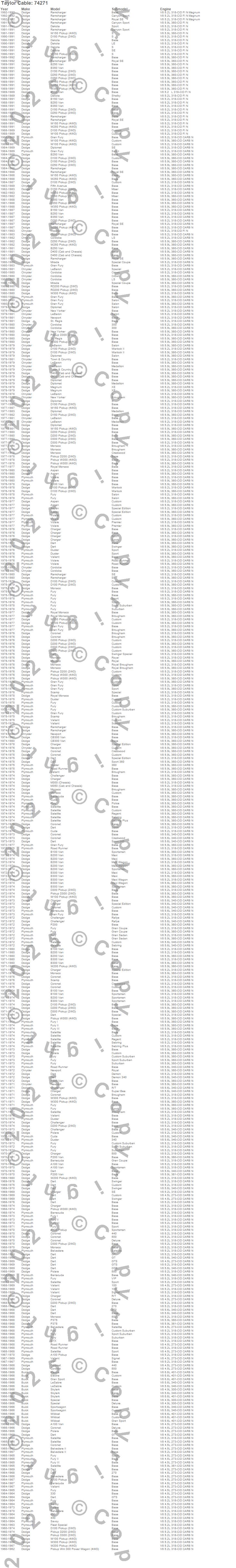 330, 440, 880, A100 Truck, A100 Van, Aspen, B100 Van, B150 Van, B200 Van, B250 Van, B300 Van, B350 Van, Barracuda, Belvedere, Belvedere II, CB300 Van, Challenger, Charger, Cordoba, Coronet more...