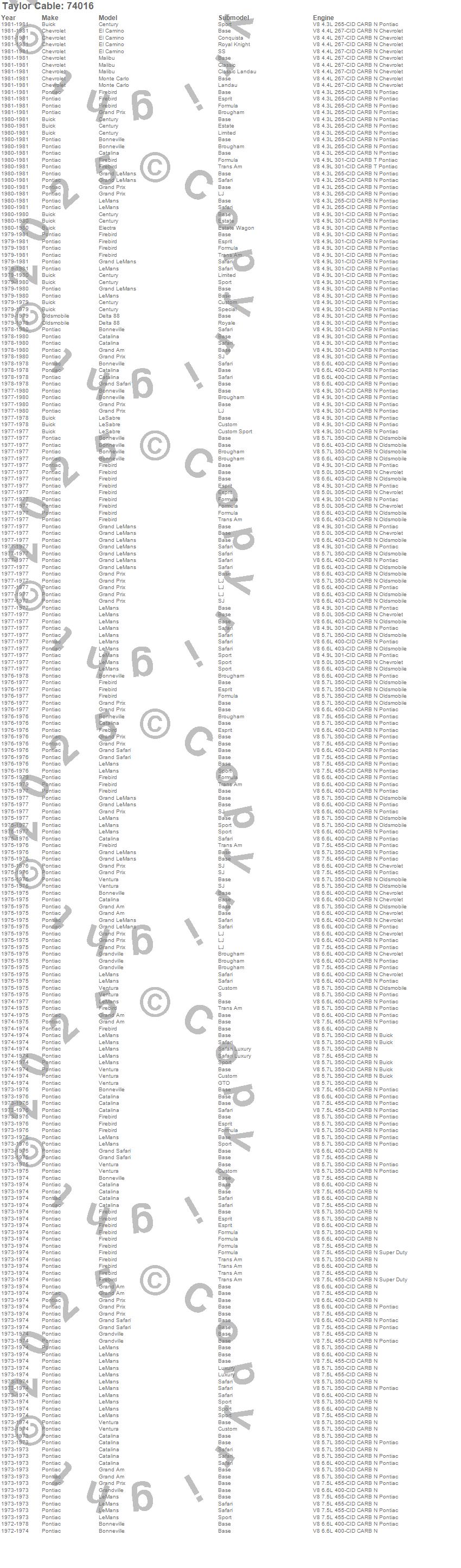 Bonneville, Catalina, Century, Delta 88, El Camino, Electra, Firebird, Firebird Trans Am, Grand Am, Grand LeMans, Grand Prix, Grand Safari, Grandville, LeMans, LeSabre, Malibu, Monte Carlo, Safari, Ventura, Buick more…