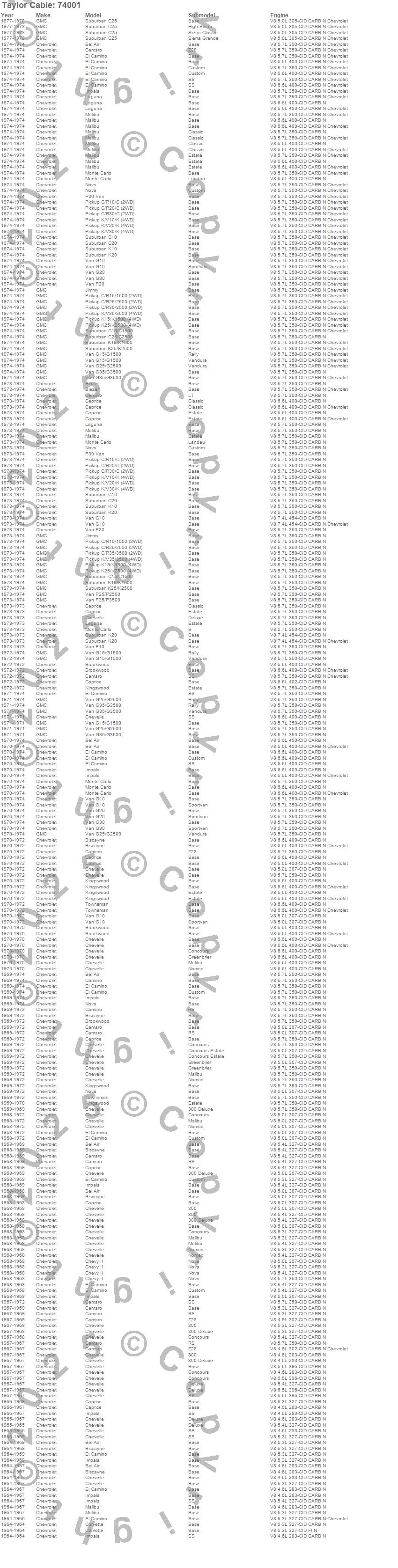 Bel Air, Biscayne, Blazer, Blazer K5, Brookwood, C10 Pickup, C10 Suburban, C15 Suburban, C15/C1500, C15/C1500 Suburban, C20 Pickup, C20 Suburban, C25 Suburban, C25/C2500 Pickup, C25/C2500 Suburban, C30 Pickup, C35/C3500 Pickup, C3500 Pickup, Camaro, Caprice more…