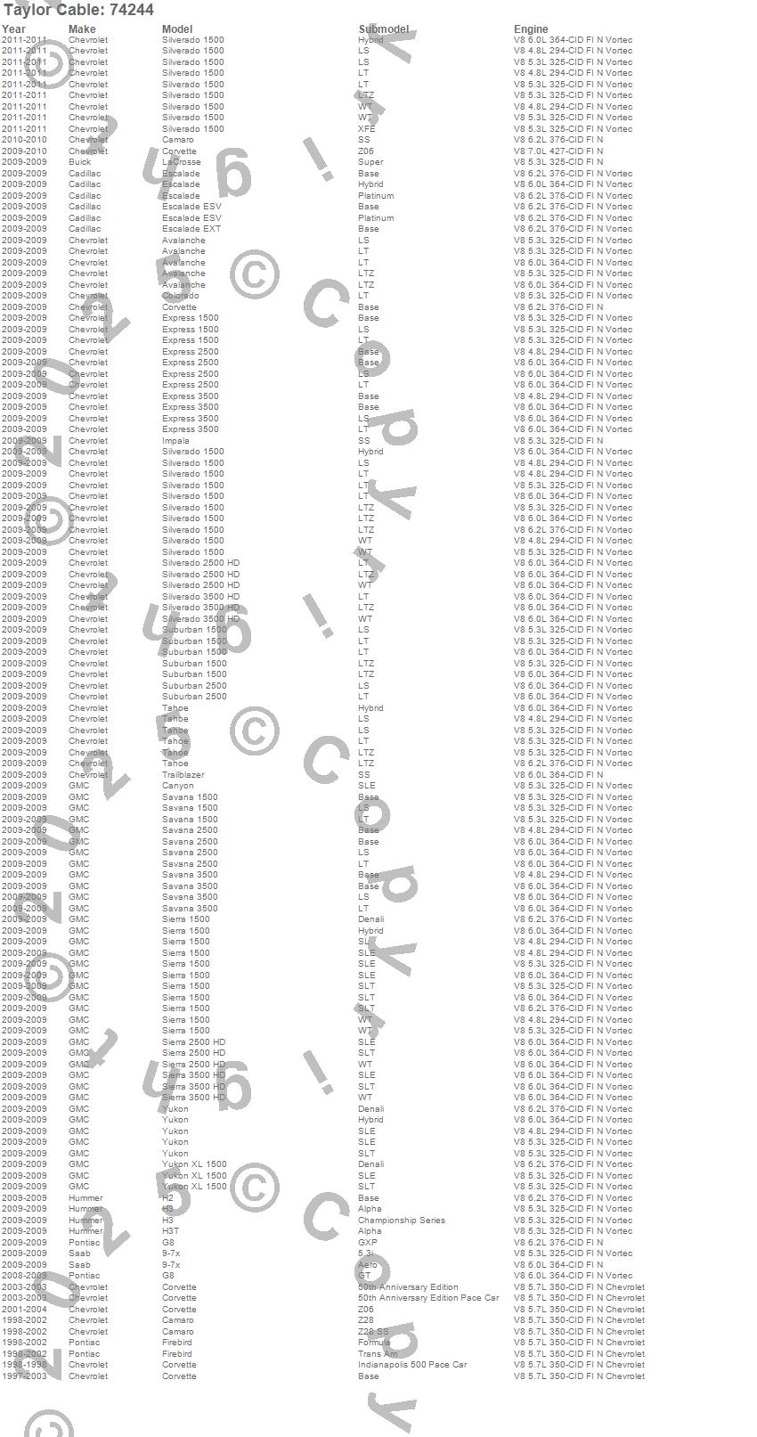 9-7x, Avalanche, Camaro, Colorado, Corvette, Escalade, Escalade ESV, Escalade EXT, Express 1500, Express 2500, Express 3500, Firebird, G8, H2, H3, H3T, Impala, LaCrosse, Savana 1500, Savana 2500 more…