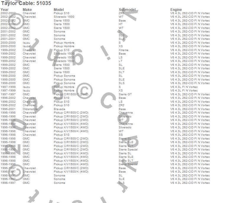 Below is an abreviated list of applications for the Street Thunder Ignition Wire Set.