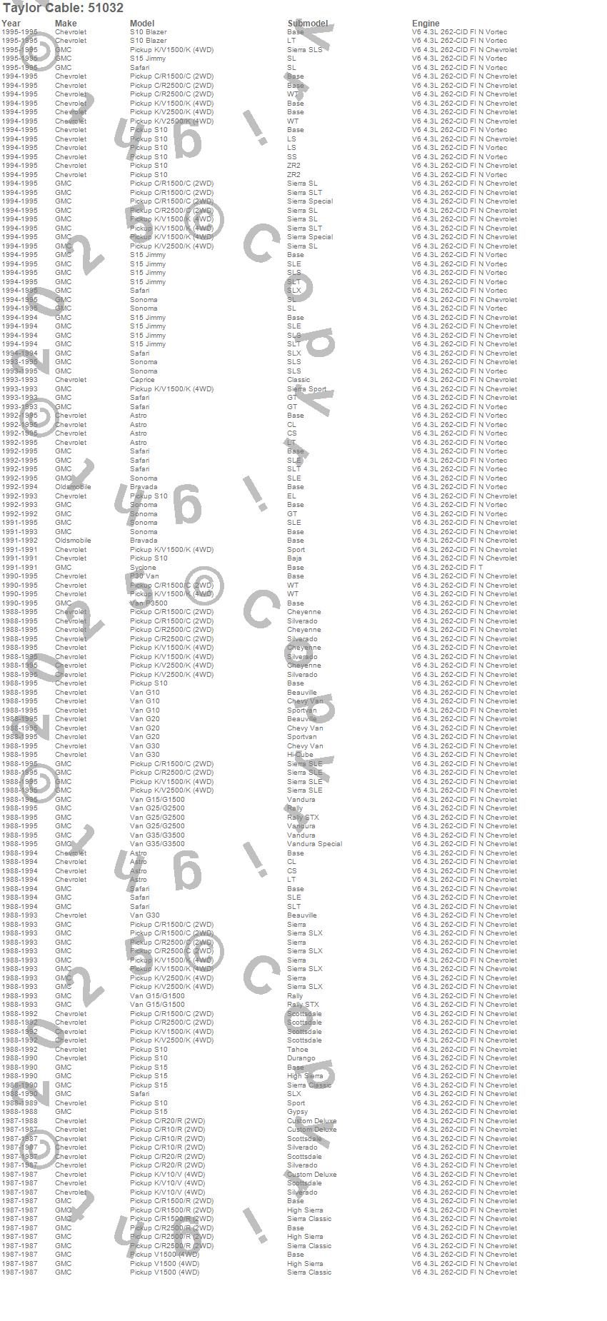Below is an abreviated list of applications for the Street Thunder Ignition Wire Set.