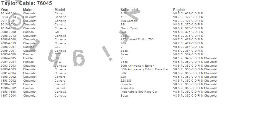 Below is an abreviated list of applications for the Spiro Pro LS Race Fit Ignition Wire Set.