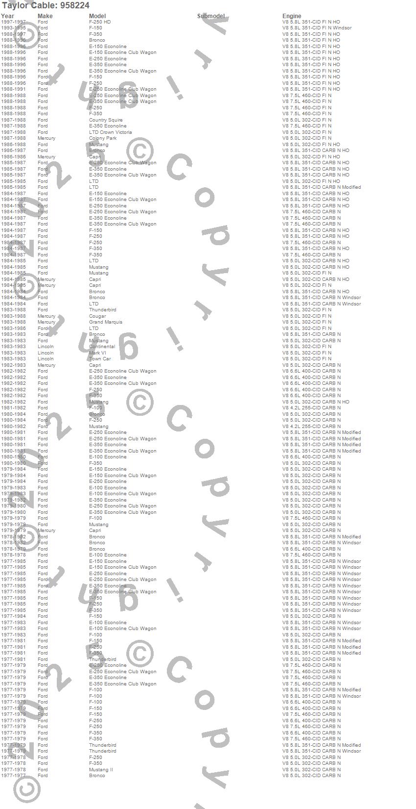 Bronco, Capri, Colony Park, Continental, Cougar, Country Squire, E-100 Econoline, E-100 Econoline Club Wagon, E-150 Econoline, E-150 Econoline Club Wagon, E-250 Econoline, E-250 Econoline Club Wagon, E-350 Econoline, E-350 Econoline Club Wagon, F-100, F-150, F-250, F-350, Grand Marquis, LTD more…