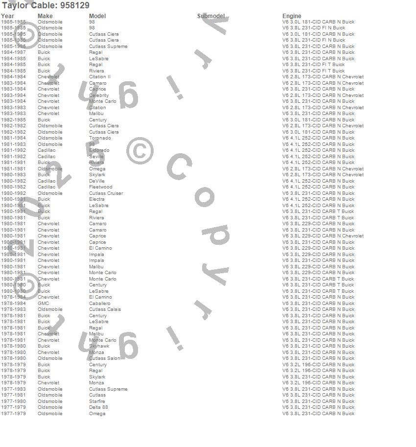 98, Caballero, Camaro, Caprice, Celebrity, Century, Citation, Citation II, Cutlass, Cutlass Calais, Cutlass Ciera, Cutlass Cruiser, Cutlass Salon, Cutlass Supreme, Delta 88, DeVille, El Camino, Eldorado, Electra, Fleetwood more…