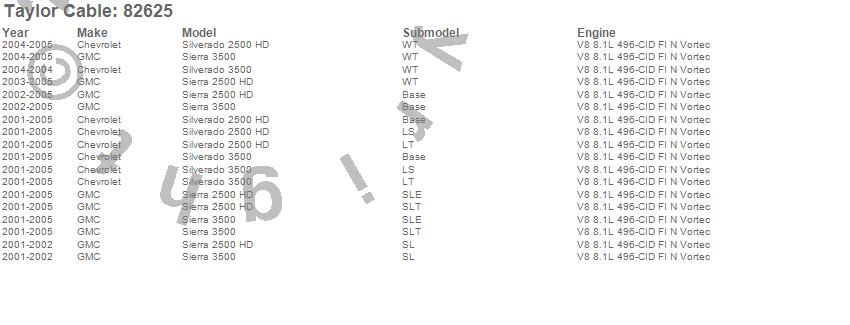 Below is an abreviated list of applications for the ThunderVolt 40 ohm Ferrite Core Performance Ignition Wire Set.
