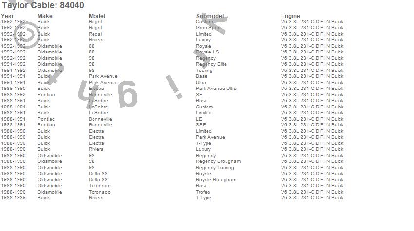 Below is an abreviated list of applications for the ThunderVolt 40 ohm Ferrite Core Performance Ignition Wire Set.