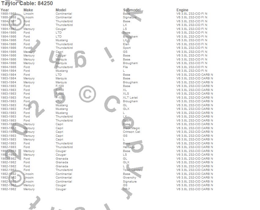 Capri, Continental, Cougar, F-100, Granada, LTD, Marquis, Mustang, Thunderbird, Ford, Lincoln, Mercury, 1988, 1987, 1986, 1985, 1984, 1983, 1982 more…