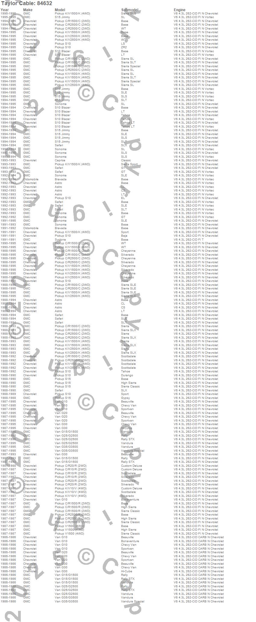 Astro, Bravada, C1500, C1500 Pickup, C2500 Pickup, Caprice, G10 Van, G15/G1500 Van, G20 Van, G25/G2500 Van, G30 Van, G35/G3500 Van, K1500, K1500 Pickup, K2500 Pickup, R10 Pickup, R1500 Pickup, R20 Pickup, R2500 Pickup, S10 Blazer more…
