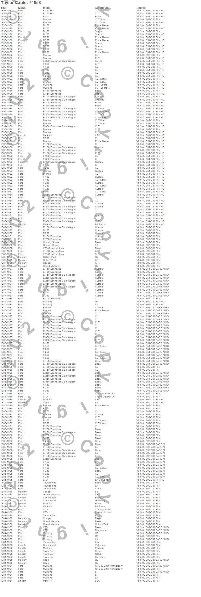 Bronco, Capri, Colony Park, Continental, Cougar, Country Squire, E-150 Econoline, E-150 Econoline Club Wagon, E-250 Econoline, E-250 Econoline Club Wagon, E-350 Econoline, E-350 Econoline Club Wagon, F-150, F-250, F-350, Grand Marquis, LTD, LTD Crown Victoria, Mark VII, Mustang more…