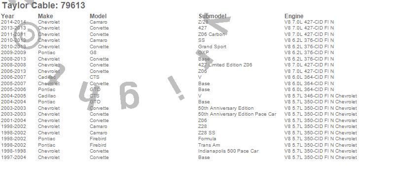 Below is an abreviated list of applications for the 409 Pro Race LS Race Fit Ignition Wire Set.