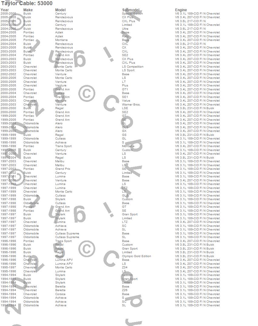Below is an abreviated list of applications for the Street Thunder Ignition Wire Set.