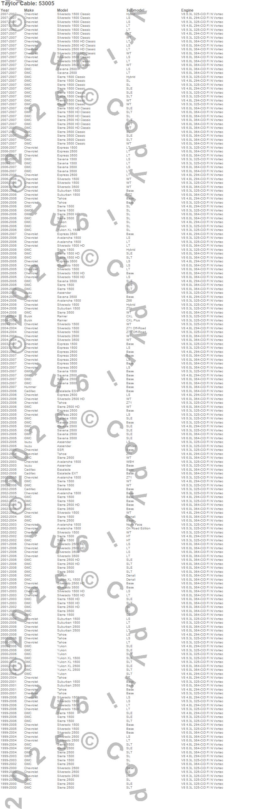 Below is an abreviated list of applications for the Street Thunder Ignition Wire Set.