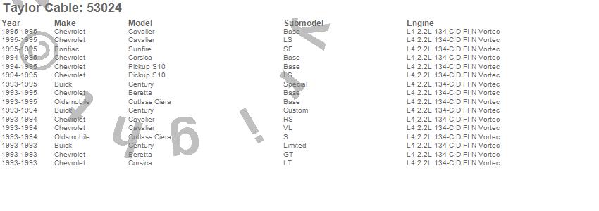 Below is an abreviated list of applications for the Street Thunder Ignition Wire Set.