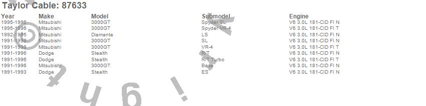 Below is an abreviated list of applications for the ThunderVolt 40 ohm Ferrite Core Performance Ignition Wire Set.