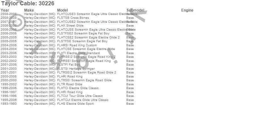 FLHR/I Road King, FLHRI Road King, FLHRS/I Road King Custom, FLHRSE3 Screamin Eagle Road King, FLHRSE4 Screamin Eagle Road King, FLHRSEI Screamin Eagle Road King, FLHRSEI2 Screamin Eagle Road King 2, FLHRSI Road King Custom, FLHS Electra Glide Sport, FLHT/I Electra Glide Standard, FLHTC/I Electra Glide Classic, FLHTCI Electra Glide Classic, FLHTCSE Screamin Eagle Electra Glide, FLHTCSE2 Screamin Eagle Electra Glide 2, FLHTCU/I Electra Glide Ultra Classic, FLHTCUI Electra Glide Ultra Classic, FLHTCUSE Screamin Eagle Ultra Classic Electra Glide, FLHTCUSE2 Screamin Eagle Ultra Classic Electra Glide, FLHTCUSE3 Screamin Eagle Ultra Classic Electra Glide, FLHTI Electra Glide Standard more…