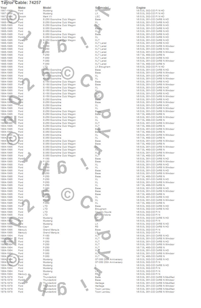 Capri, E-150 Econoline, E-150 Econoline Club Wagon, E-250 Econoline, E-250 Econoline Club Wagon, E-350 Econoline, E-350 Econoline Club Wagon, F-150, F-250, F-350, Grand Marquis, LTD, Mark VII, Mustang, Thunderbird, Ford, Lincoln, Mercury, 1988, 1987 more…