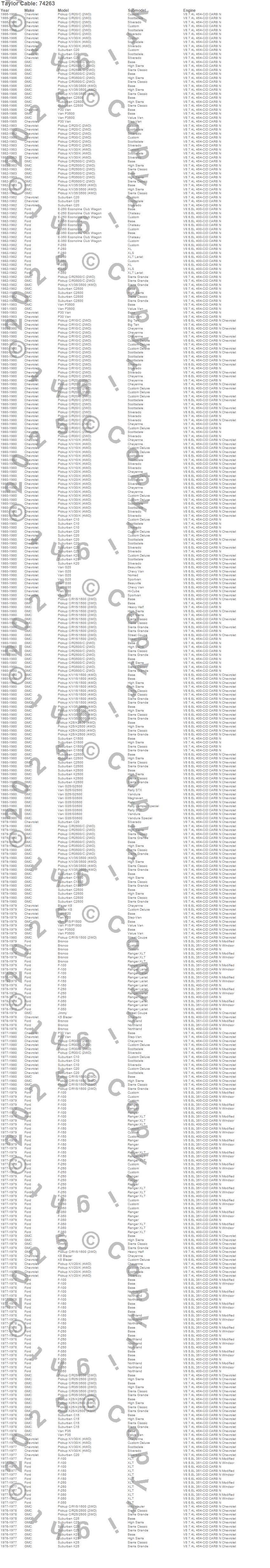 Blazer K5, Bronco, C10 Pickup, C10 Suburban, C15 Suburban, C15/C1500, C1500, C1500 Suburban, C20 Pickup, C20 Suburban, C25 Suburban, C25/C2500 Pickup, C2500 Pickup, C2500 Suburban, C30 Pickup, C3500 Pickup, E-250 Econoline, E-350 Econoline, F-100, F-150 more…
