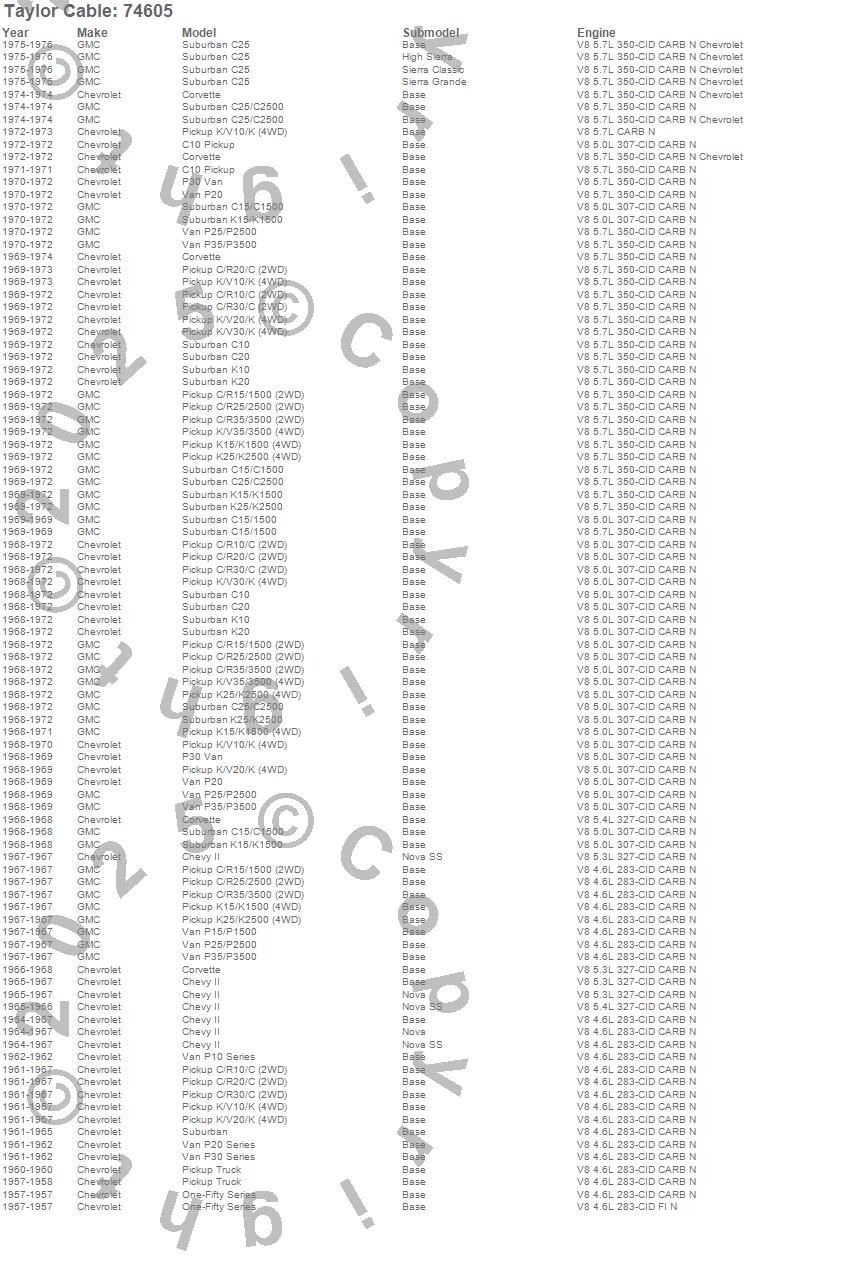 C10 Pickup, C10 Suburban, C15/C1500, C15/C1500 Suburban, C20 Pickup, C20 Suburban, C25 Suburban, C25/C2500 Pickup, C25/C2500 Suburban, C30 Pickup, C35/C3500 Pickup, Chevy II, Corvette, K10 Pickup, K10 Suburban, K15/K1500, K15/K1500 Suburban, K20 Pickup, K20 Suburban, K25/K2500 Pickup more…