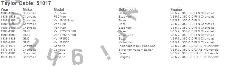 Below is an abreviated list of applications for the Street Thunder Ignition Wire Set.