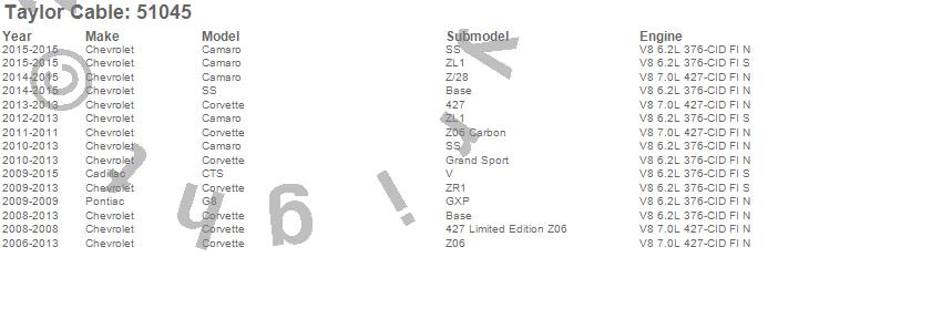 Below is an abreviated list of applications for the Street Thunder LS Race Fit Ignition Wire Set.