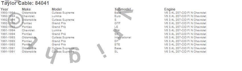 Below is an abreviated list of applications for the ThunderVolt 40 ohm Ferrite Core Performance Ignition Wire Set.
