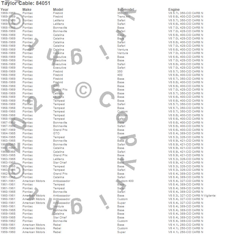 Ambassador, Bonneville, Catalina, Catalina Ventura, Executive, Firebird, Grand Prix, GTO, LeMans, Rebel, Safari, Star Chief, Tempest, Ventura, American Motors, Pontiac, 1969, 1968, 1967, 1965 more…