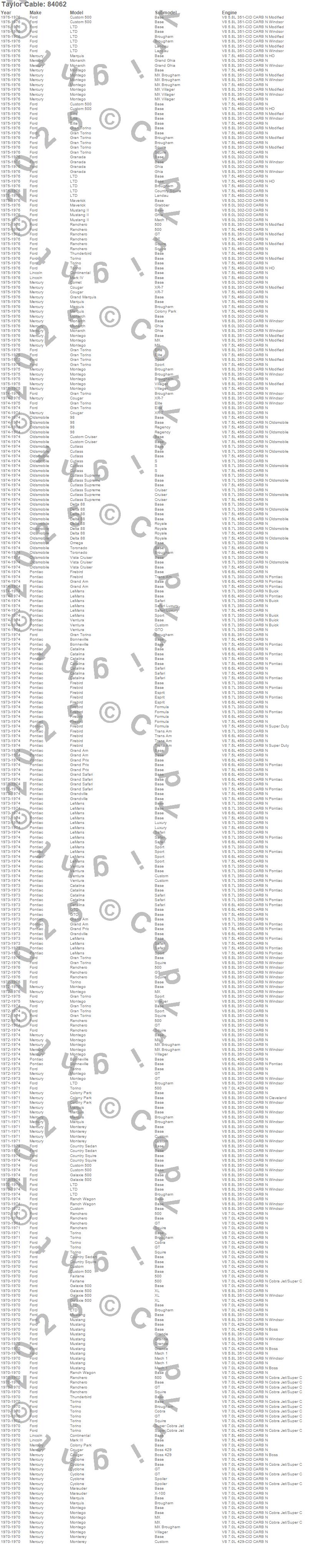 98, Bonneville, Catalina, Colony Park, Comet, Continental, Cougar, Country Sedan, Country Squire, Custom, Custom 500, Custom Cruiser, Cutlass, Cutlass Supreme, Cyclone, Delta 88, Elite, Fairlane, Firebird, Firebird Trans Am more…