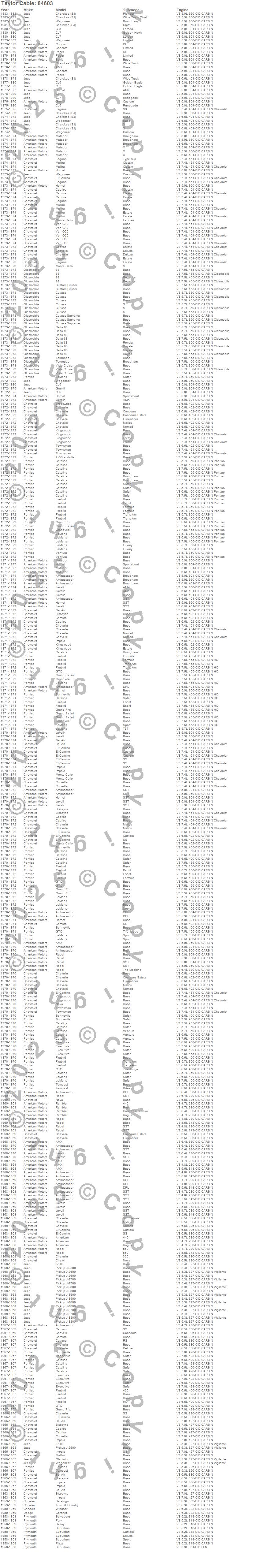 98, Ambassador, American, AMX, Bel Air, Belvedere, Biscayne, Bonneville, Brookwood, Camaro, Caprice, Catalina, Cherokee (SJ), Chevelle, Chevy II, CJ5, CJ6, CJ7, Concord, Coronet more…