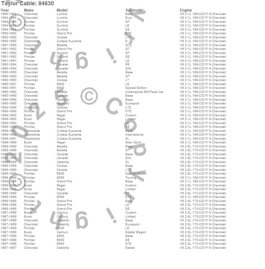 Taylor Cable ThunderVolt 40 ohm Ferrite Core Performance Ignition Wire Set 84630 Features: