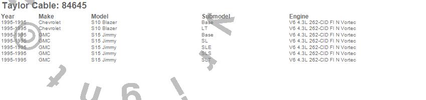 Taylor Cable ThunderVolt 40 ohm Ferrite Core Performance Ignition Wire Set 84645 Features: