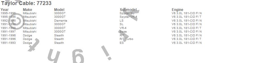 Below is an abreviated list of applications for the 8mm Spiro Pro Ignition Wire Set.